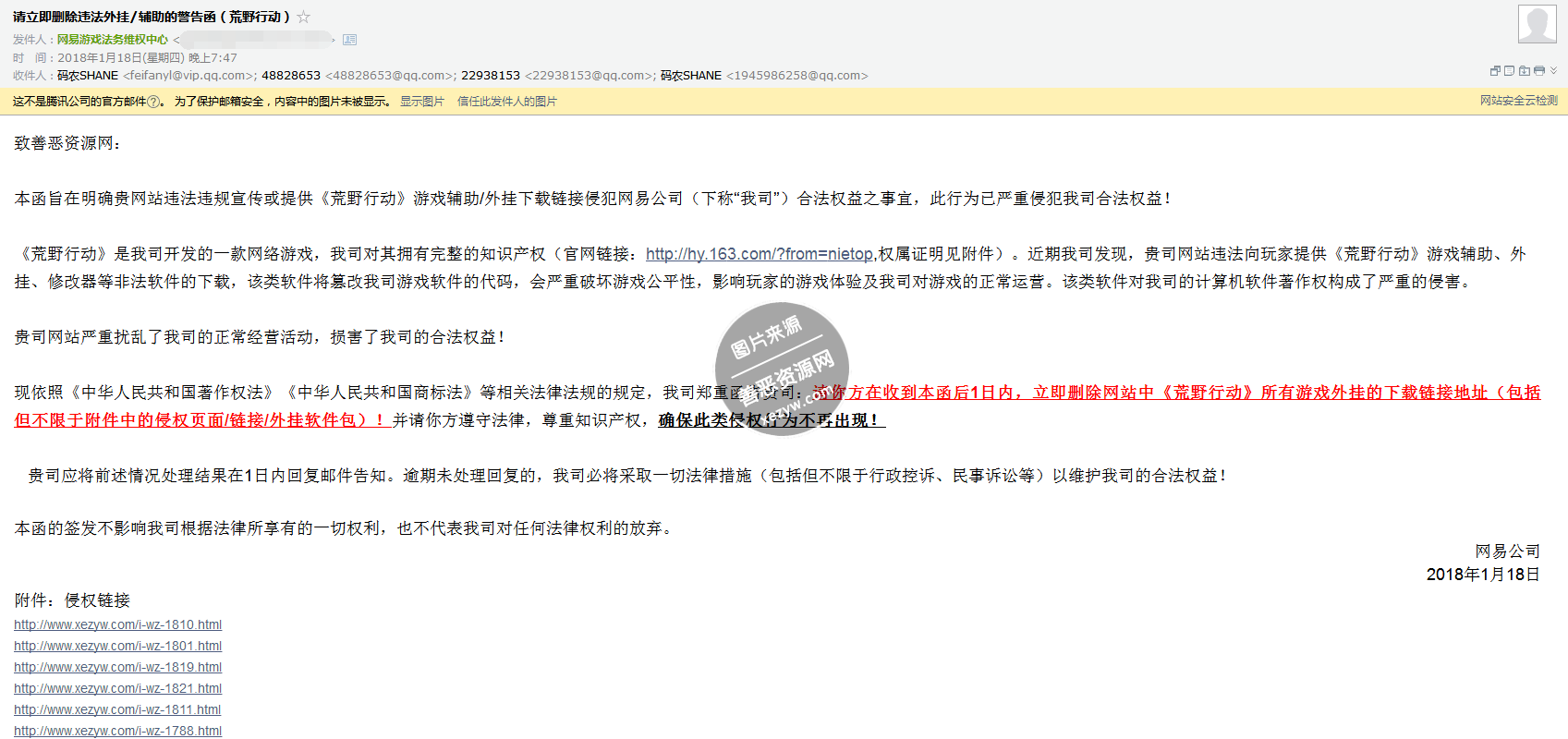 今天下午开始执行,清理内容为网易公司旗下游戏辅助(荒野行动),以后不在发布荒野行动的辅助了!