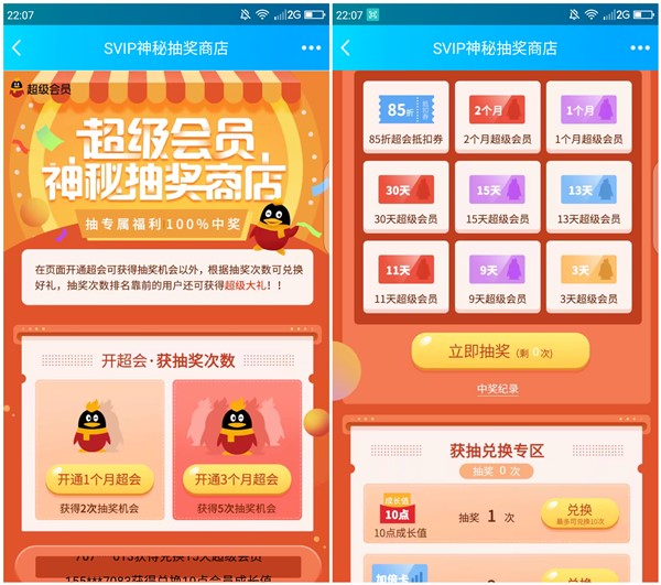 可以抽到3-60天超级会员,以及85折超级会员抵扣券!