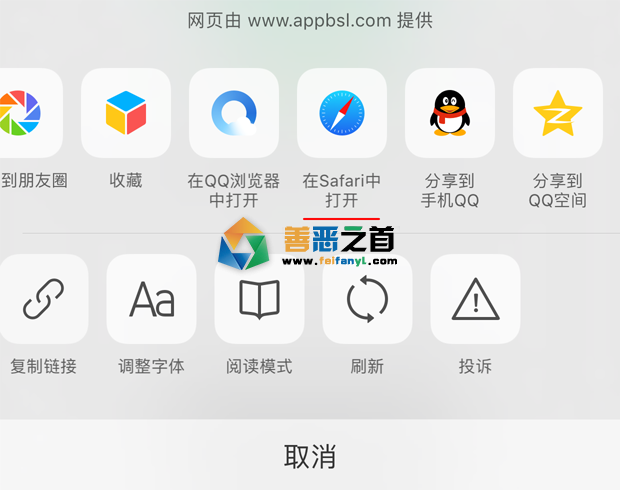 1.1、扫描打开网页后,在右上角弹出层如下图,一定要选择"在Safari中打开"