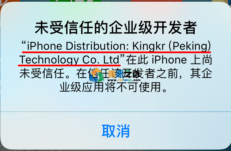 苹果手机iPhone、iPad、iPod Touch等系统升级iOS9以后,企业证书生成的app会提示“未受信任的企业级开发者”。在变色龙生成的app,在未上架前也会有此提示。如何解决变色龙app 在IOS9上的问题呢?