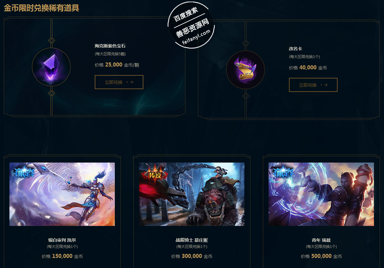 金币兑换限时开放 LOL玩家有金币的可以兑换一下