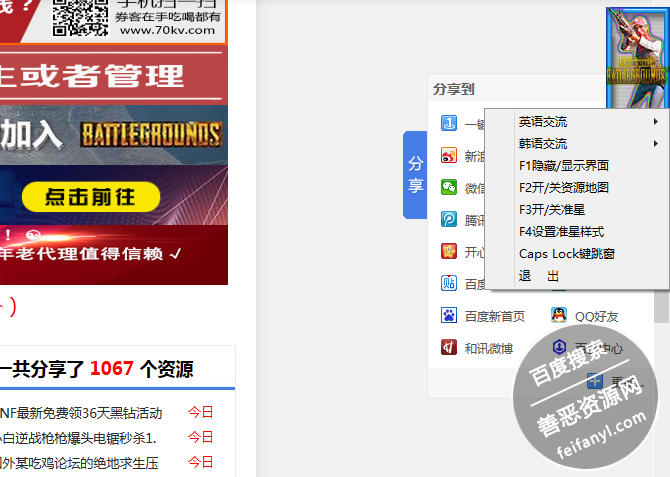 3、F1隐藏辅助界面,F2资源地图,F3游戏准星,F4准星设置,还有个语音交流很不错哦!