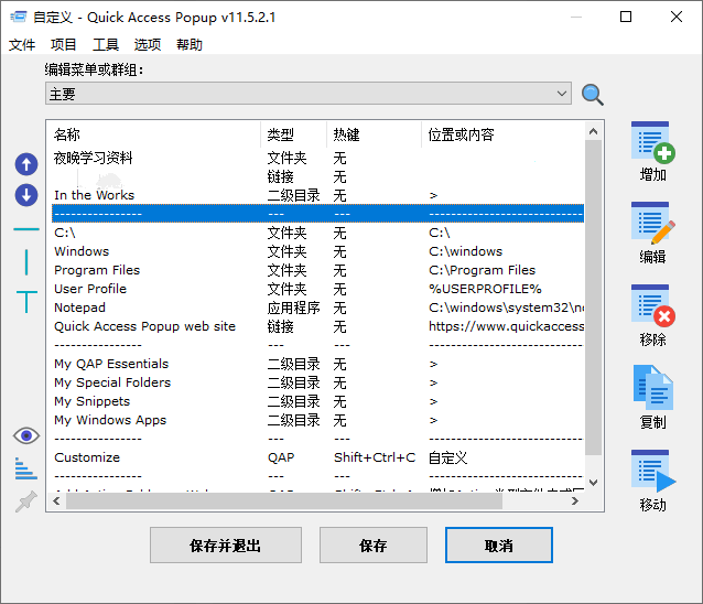Quick Access Popup是一款非常好用的快速启动器,利用它,你可以非常方便的管理和启动大量绿色软件,除了能够添加程序之外,还可以添加文件夹、文件、网址、快捷方式等其他东西!
