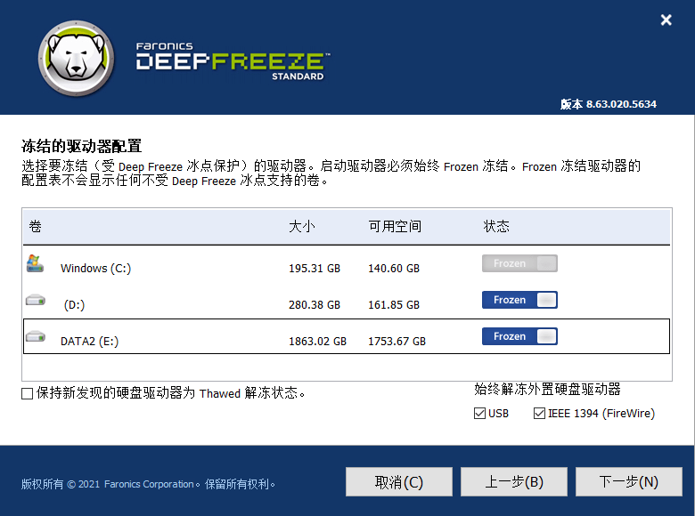 Deep Freeze冰点还原是由加拿大Faronics公司开发的老牌系统还原软件,可以自动将系统还原到初始状态,保护系统不被更改,能够很好的抵御病毒的入侵以及人为的对系统有意或无意的破坏。冰点还原精灵的安装不会影响硬盘分区和操作系统。轻松安装、动态保护、实时瞬间恢复,操作简单。安装了它的系统,无论进行了安装文件,还是删除文件、更改系统设置等操作,计算机重新启动后,一切将恢复成初始状态。