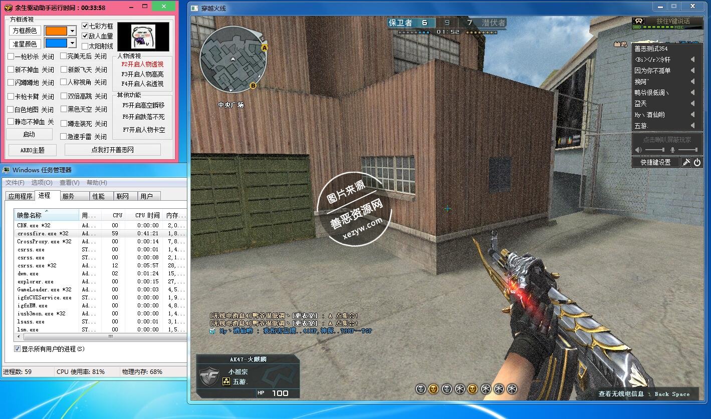 首先 打开辅助 然后点击强删 然后打开卡图标 卡了点击 AERO主题 然后上游戏 然后点击启动即可