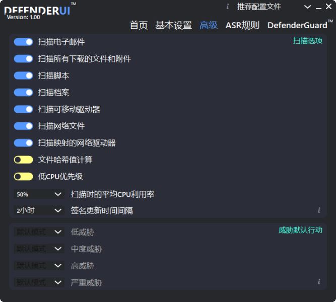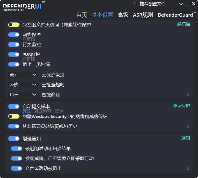 推荐配置文件:解锁 Microsoft Defender 的一些隐藏功能。用于普通用户。
