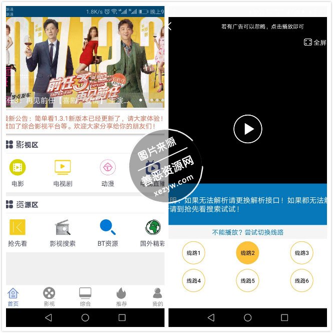 2. 增加综合模块,聚集各类著名网站平台,什么VIP电影电视剧,在这里直接就能看!一键解析播放!