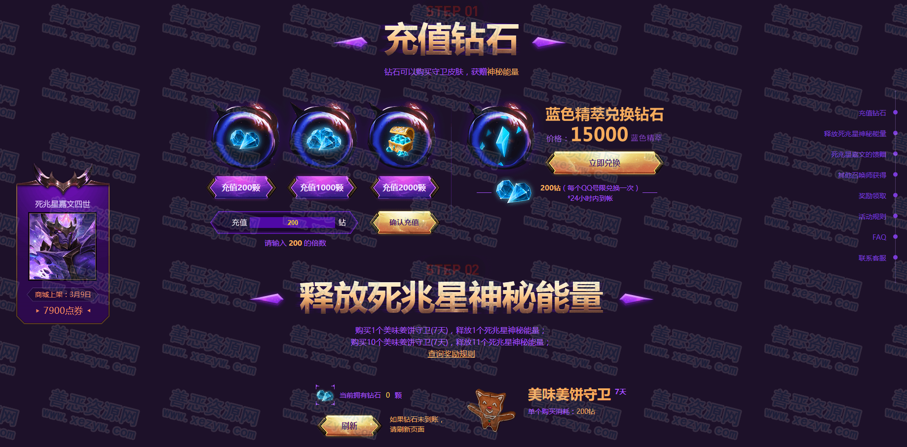 和刚刚的不一样 这个的珍稀守卫需要充值钻石或者用蓝色精粹兑换