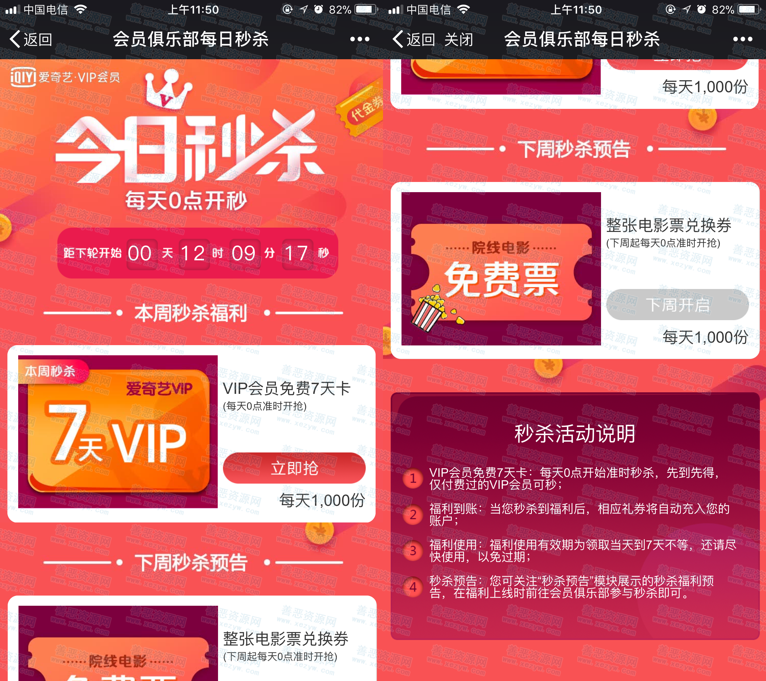 这周是抢7天爱奇艺会员 下周是抢电影票 朋友们可以关注一下