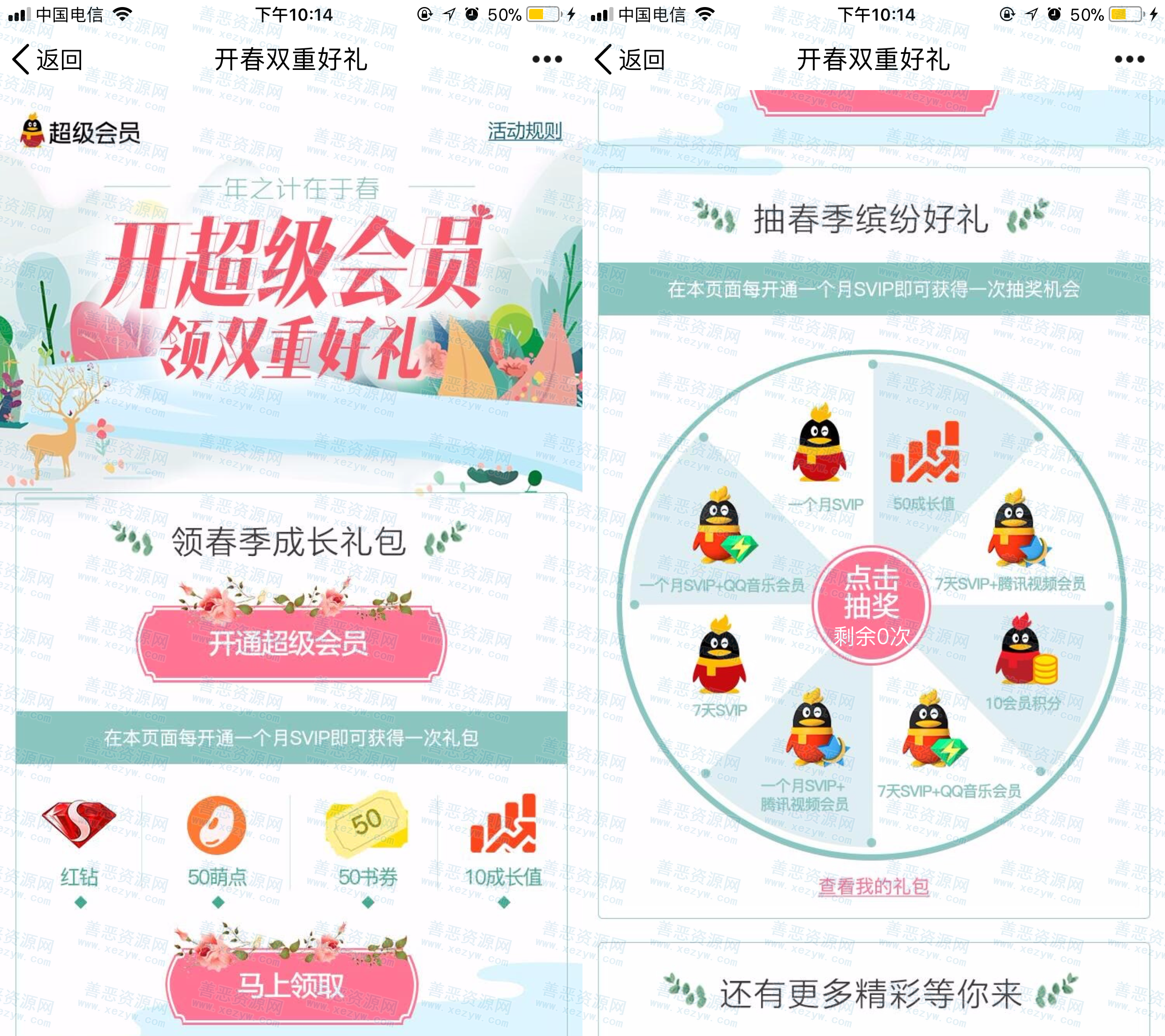 手Q扫码进入活动 在活动页面开通超级会员 可以获得一个月红钻+50萌点+50书券+10成长值