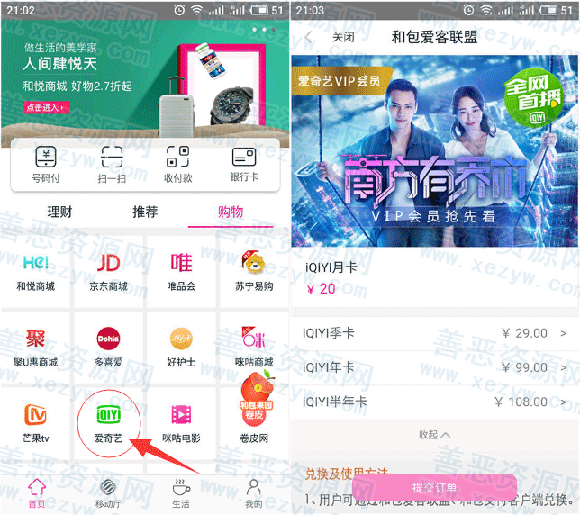 下载和包支付App-首页-购物-爱奇艺。