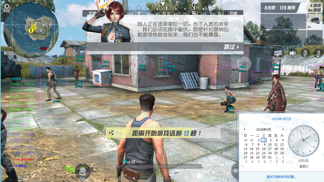功能:方框透视/骨骼自瞄/显车显物(高显可辨别高级物品可设置)识别人机与玩家,自瞄热键可左右shift调节,外加变态功能上帝视角。