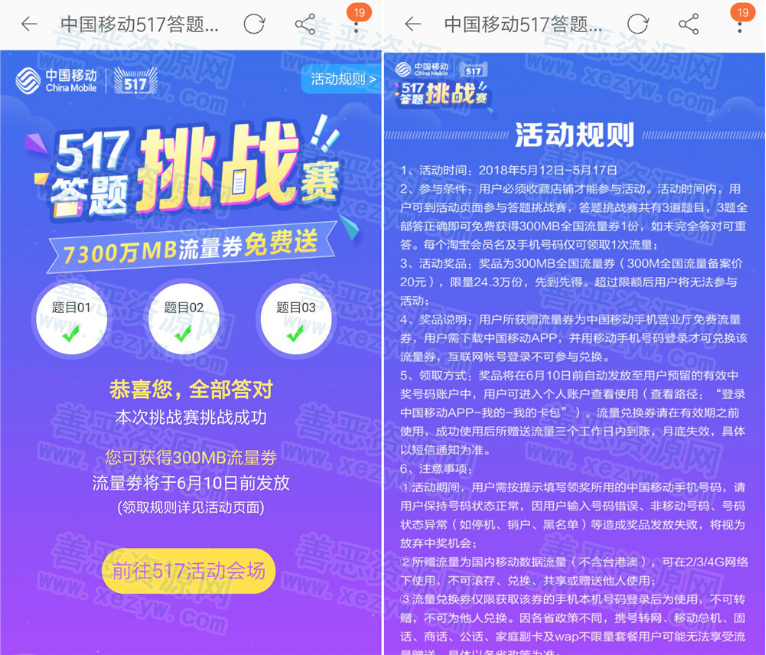 1、手机淘宝扫码进入->下拉福利专区“517答题挑战赛”答对3道即可