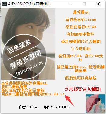4.点击郑爽的图片注入辅助,提示成功后