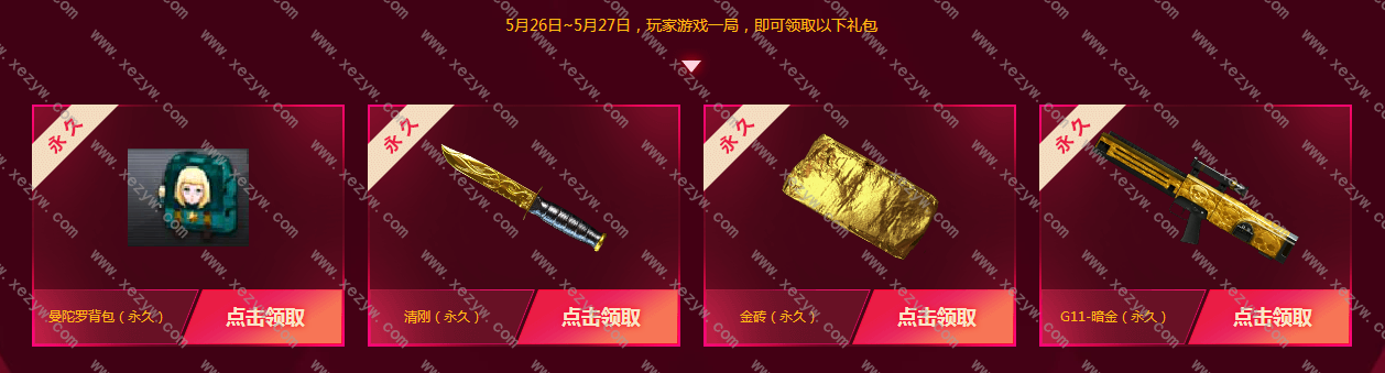 5月26日和5月27日任意一天游戏一局免费领取永久武器和道具。