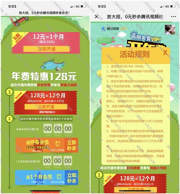 除了128元开通年费好莱坞以外,还可以蹲点抢秒7。