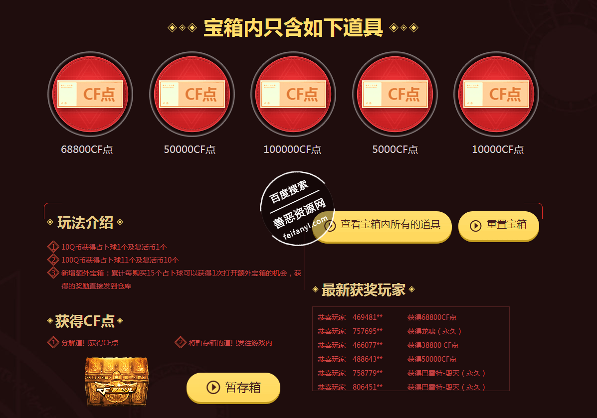 CF玩家在活动页面购买复活币 会赠送占卜球