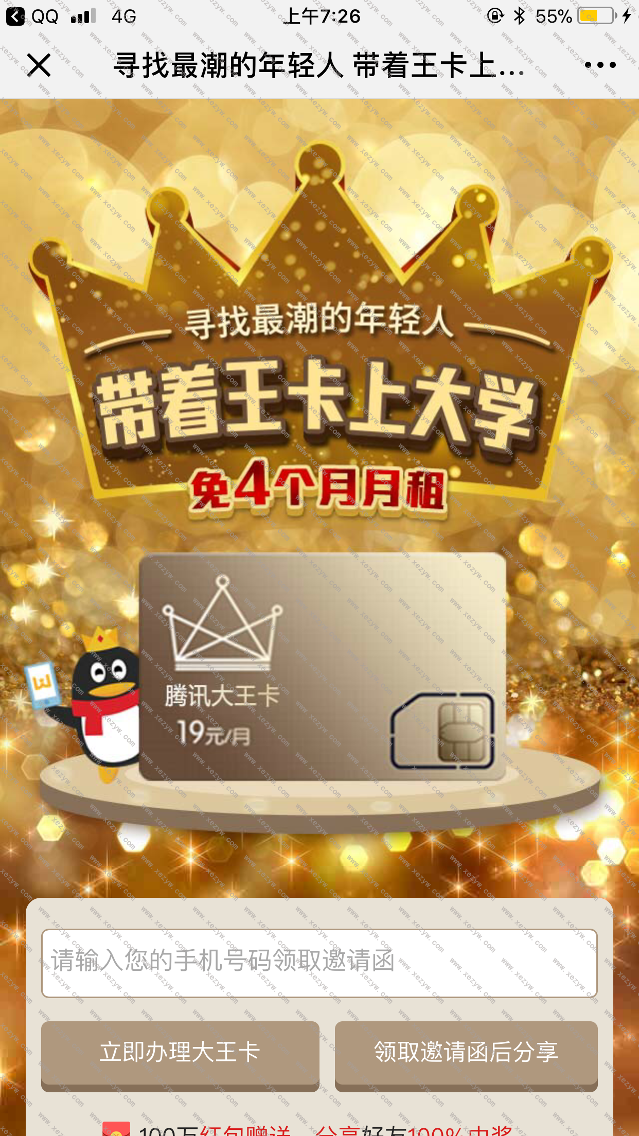 随便输入一个手机号码,点击领取邀请函后分享,进去后直接点击右上角将页面分享出去