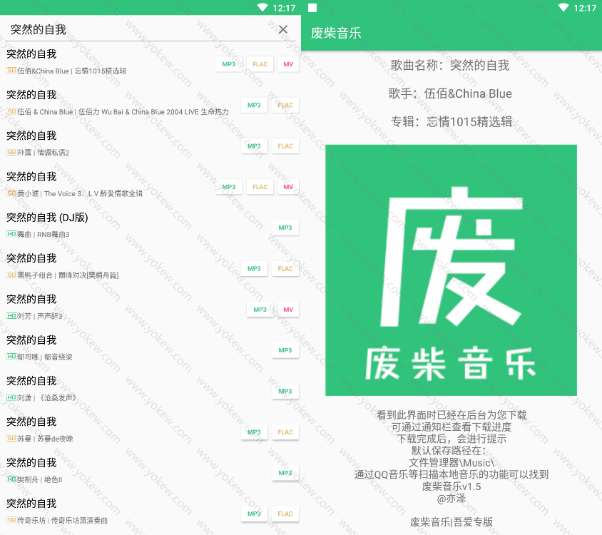 3、对音乐源进行甄别,默认有两种音质,一种是320的高品质MP3,另一种是无损格式FLAC。