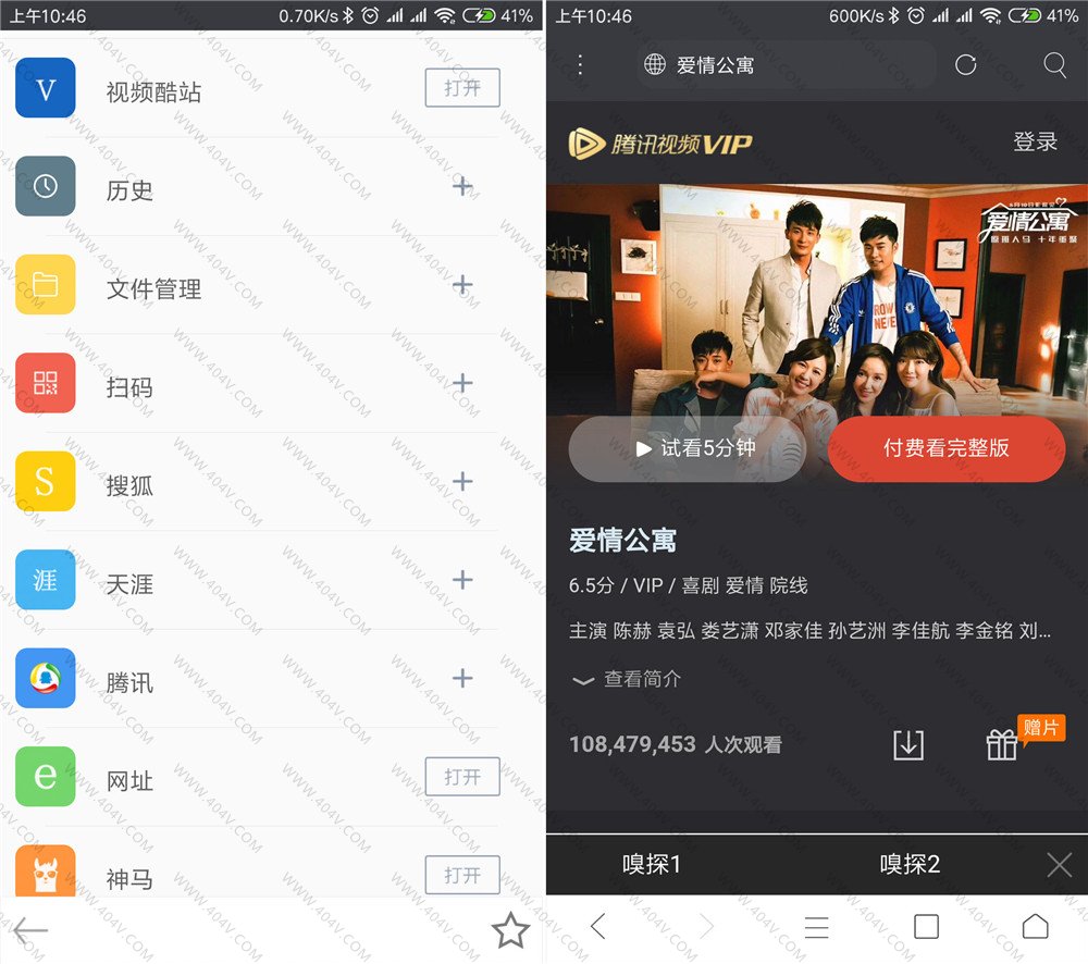 1.打开米侠浏览器,点击首页中部的“+”(加号),添加“视频酷站”并进入