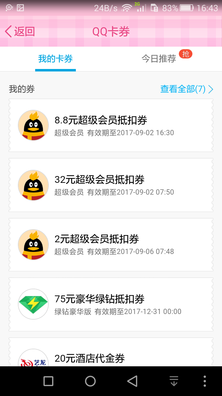 打开QQ钱包,卡卷,今日推荐,领取就可以了,要是没有的话就点一分钱换一批,一直一直换,换到它出现为止。