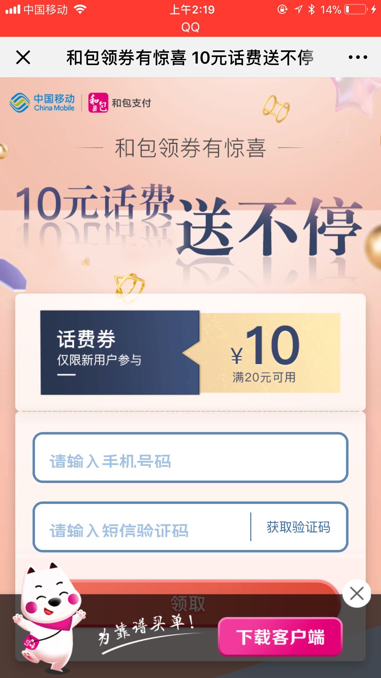 微信扫码->左下角热门活动->领10元话费券(满20能用)
