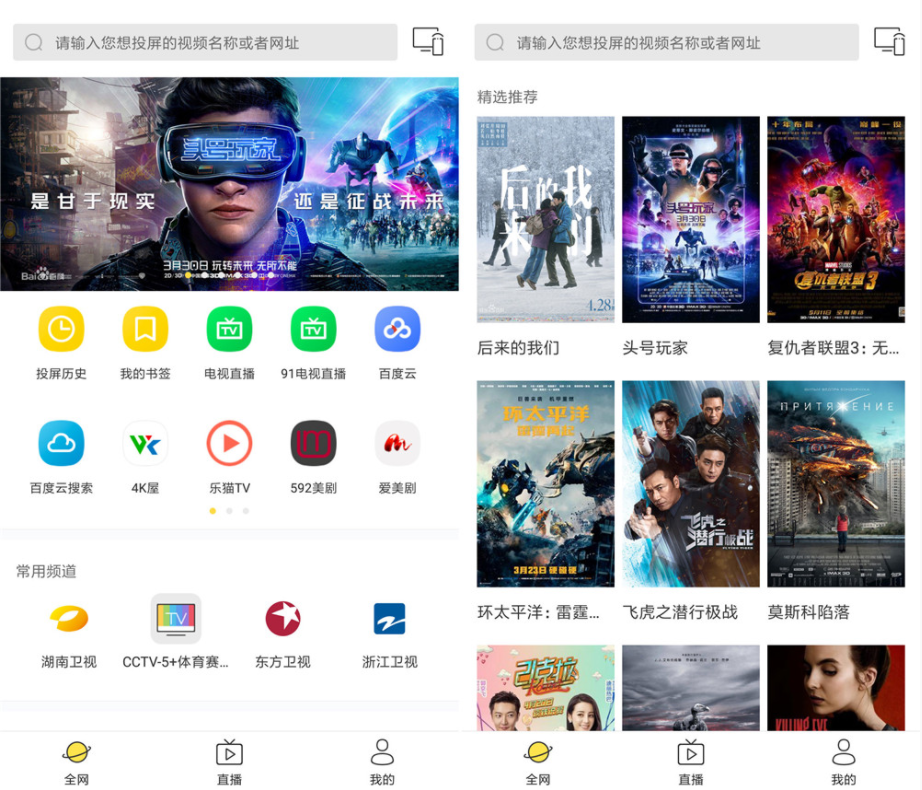各大电视台直播,无需安装应用到电视,连上即可一键投屏