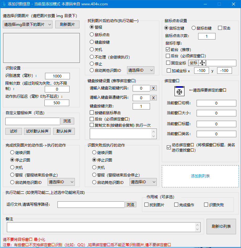 本软件可以查找设置的图片,查找成功后执行相应的动作