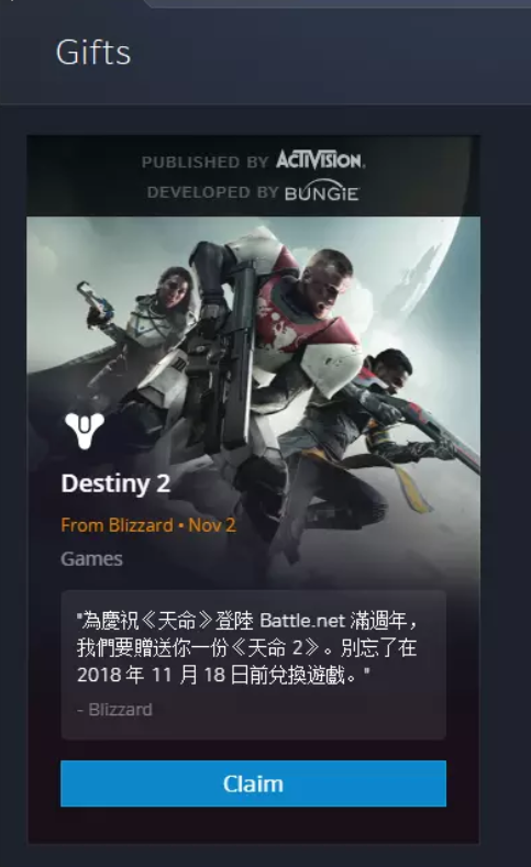地址2:https://us.account.blizzard.com/gifts/(需挂代理)