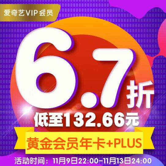 6.7折,132元=爱奇艺黄金会员1年+京东Plus会员1年,京东Plus活动挺多,上不上自己看情况了