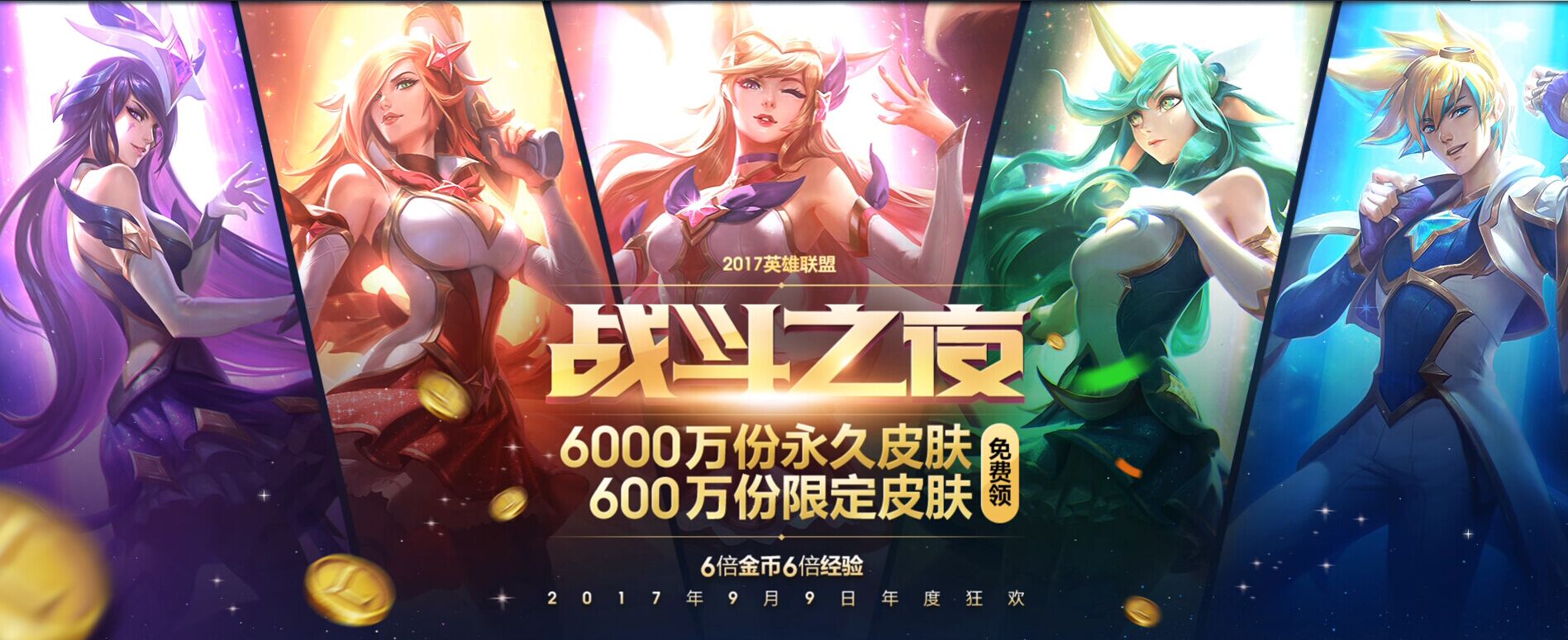 全天还有6倍金币和6倍经验 9.2~9.9 邀请好友参加战斗之夜 可领取精美皮肤