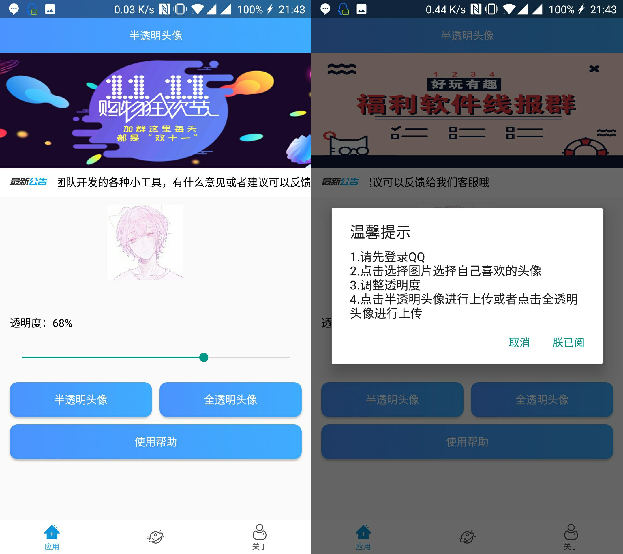 安卓手机QQ半透明全透明头像一键生成