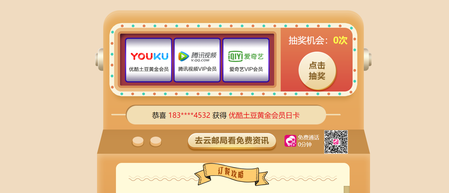 打开登录->点免费资讯快餐订阅一键下单->然后抽奖->3次机会->中了去云钱包领奖激活秒到