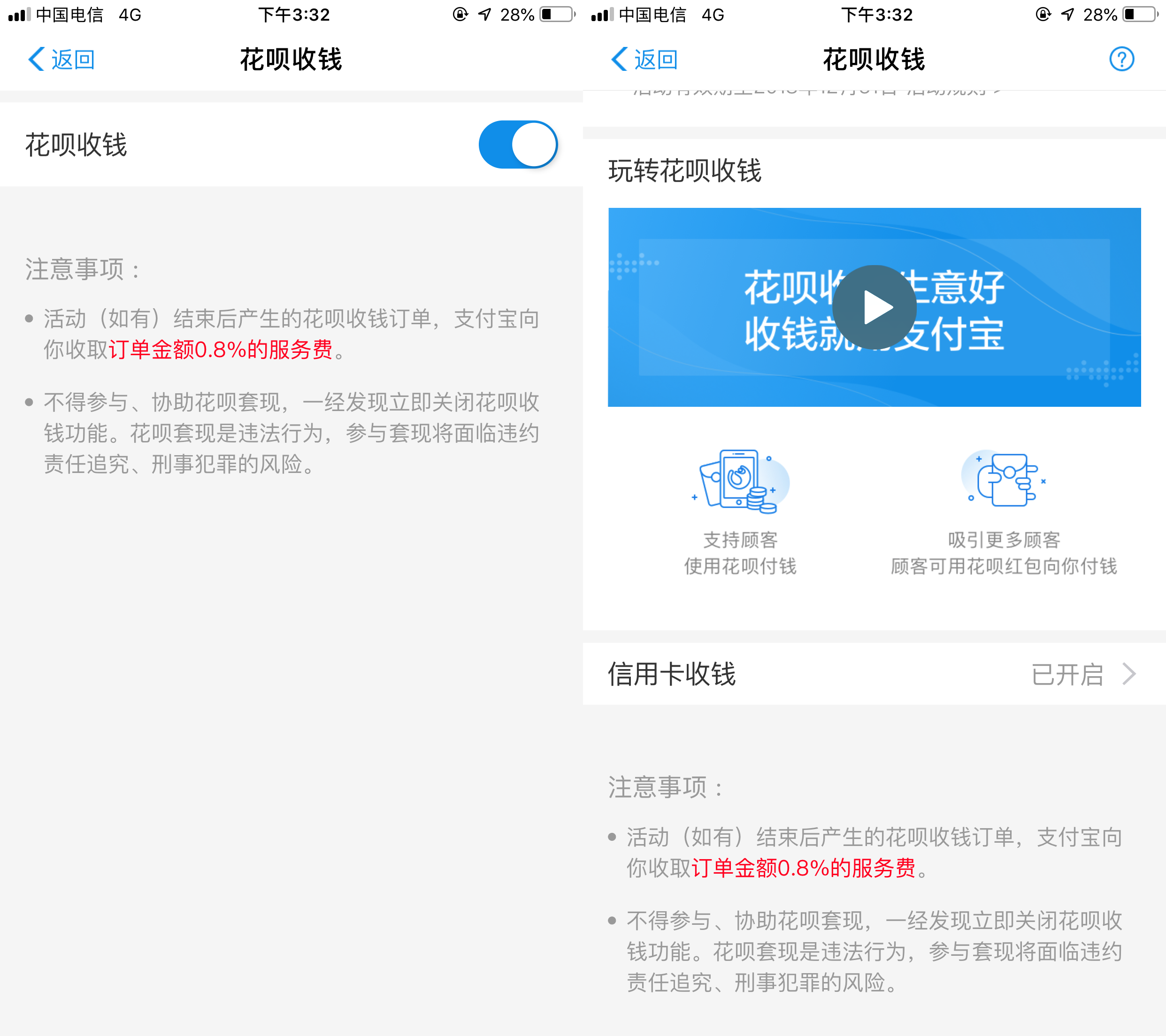 支付宝扫码进入秒开,开通后支持收款码花呗套现