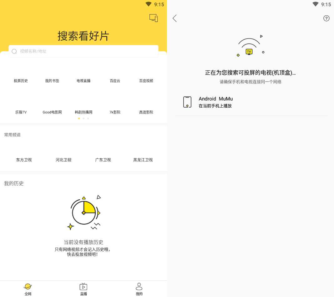 各大电视台直播,无需安装应用到电视,连上即可一键投屏