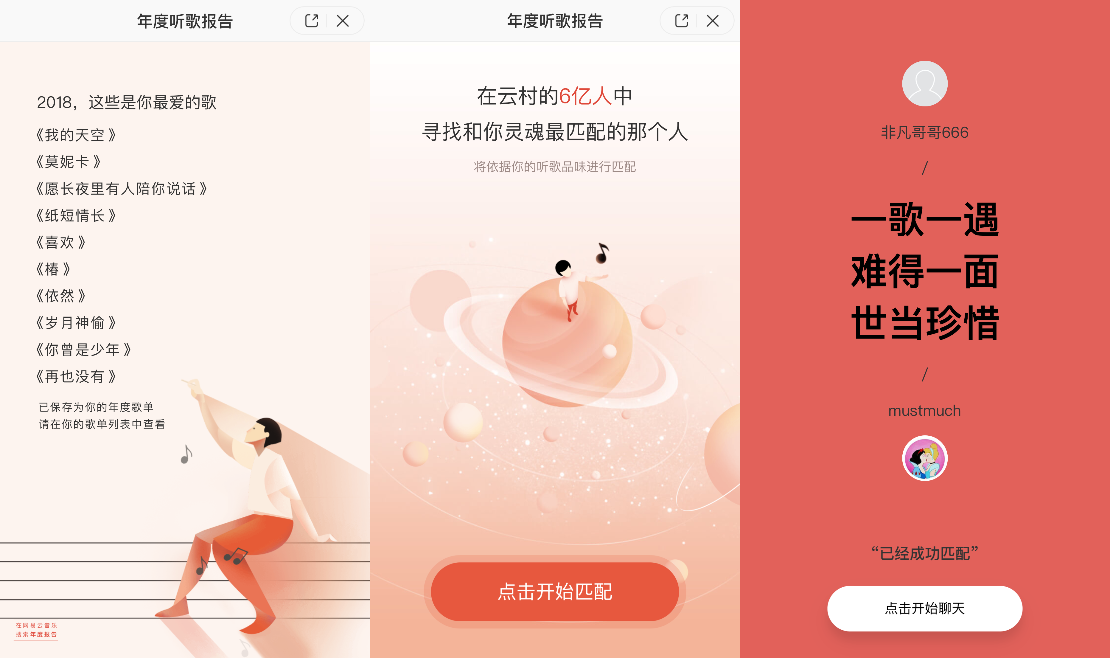 QQ扫码->点击查看年度报告->会弹窗网易云->一系列汇总后会匹配个相同爱好的小姐姐聊天