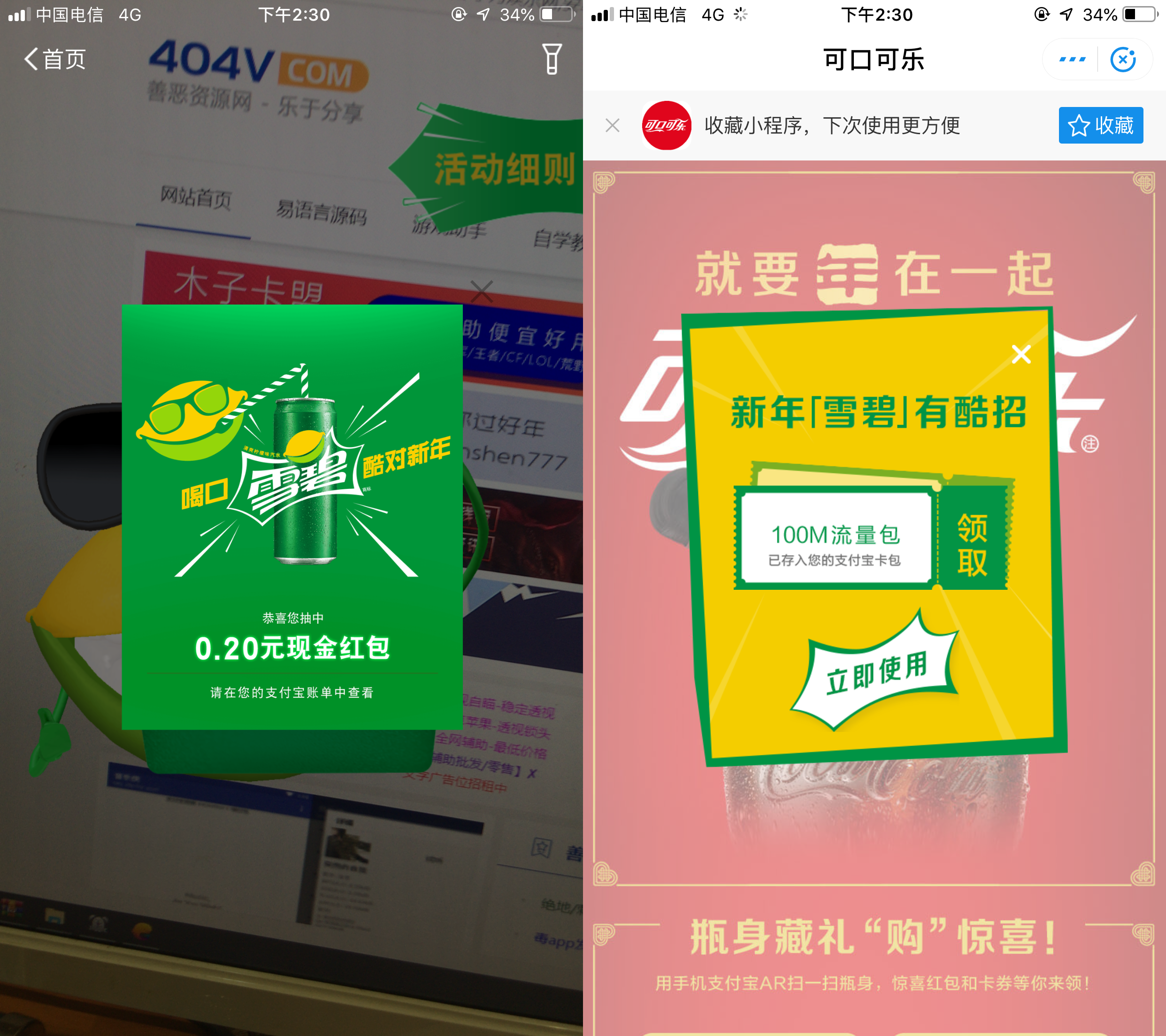 支付宝AR扫下方图片->第一次必中0.2元->第二次在扫基本必中100M流量