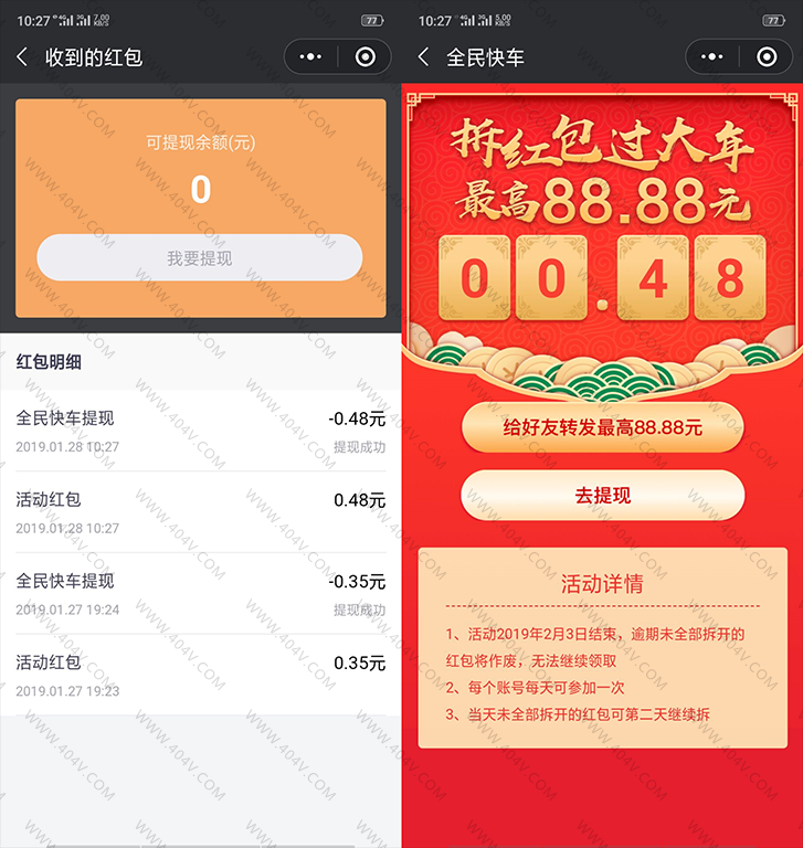微信搜索小程序“全民快车” 随便转发给朋友3次,不需要别人拆
