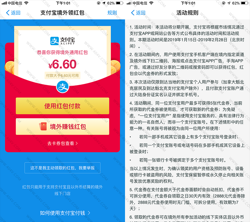支付宝扫码进入,在香港澳门之类的境外都可以使用,基本必中25元