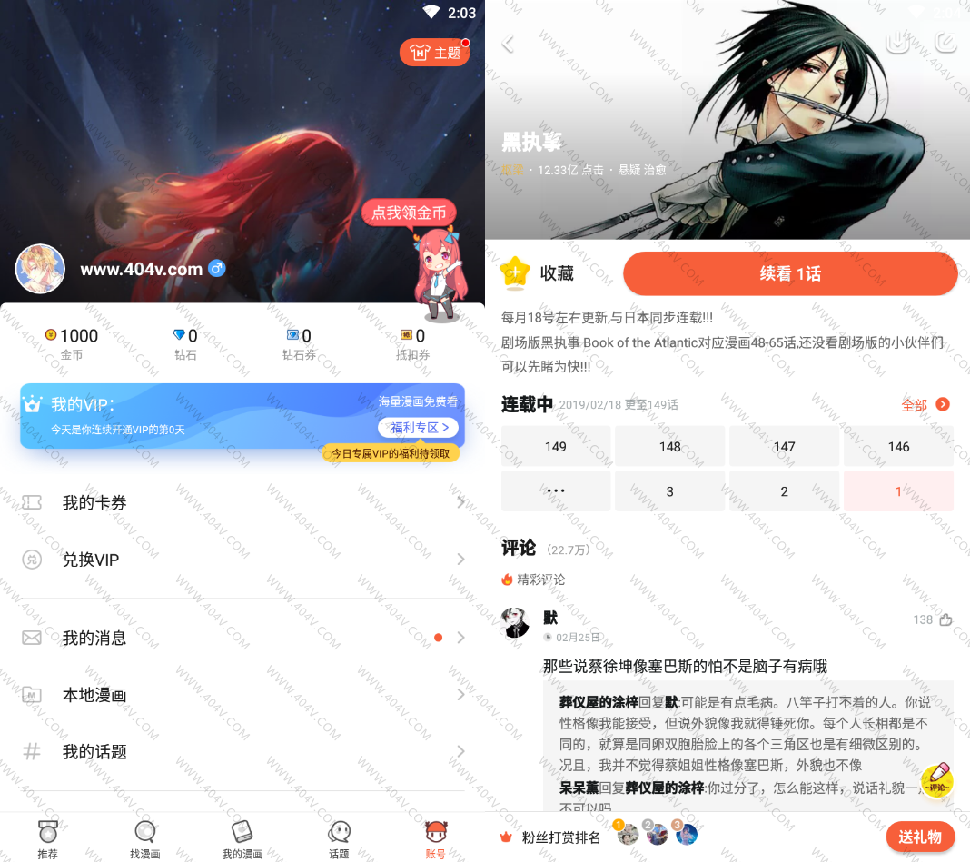 无需登录直接就是VIP,免费看VIP里面的漫画