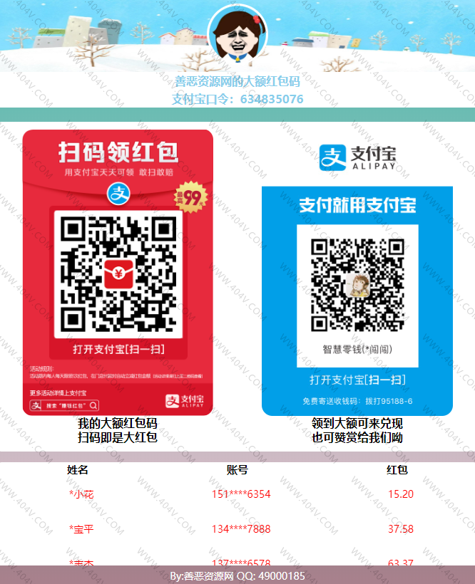 红包二维码,支付宝收款二维码,微信客服二维码即可。