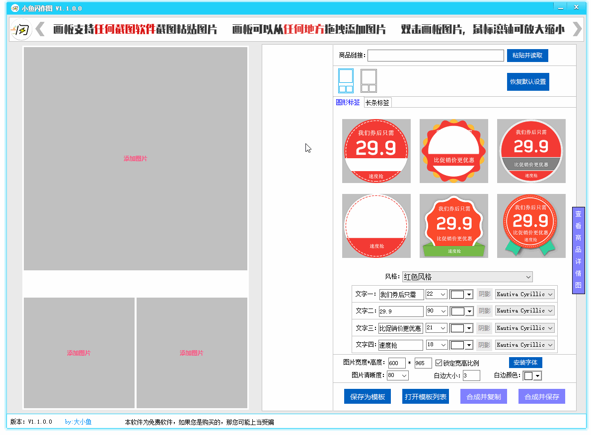 11.新增查看商品详情图功能,可直接拖拽,也可以直接用任何截图工具截图,粘贴到作图区