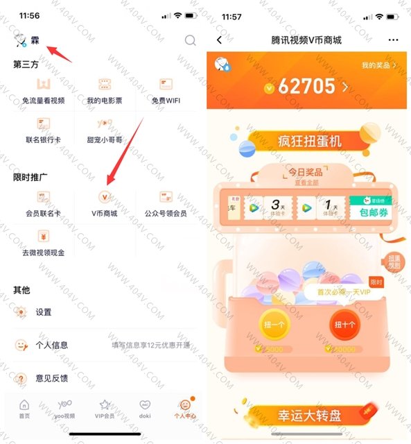 打开腾讯视频APP 个人中心 - 限时推广(或头像昵称下方有的没有) - V币商城