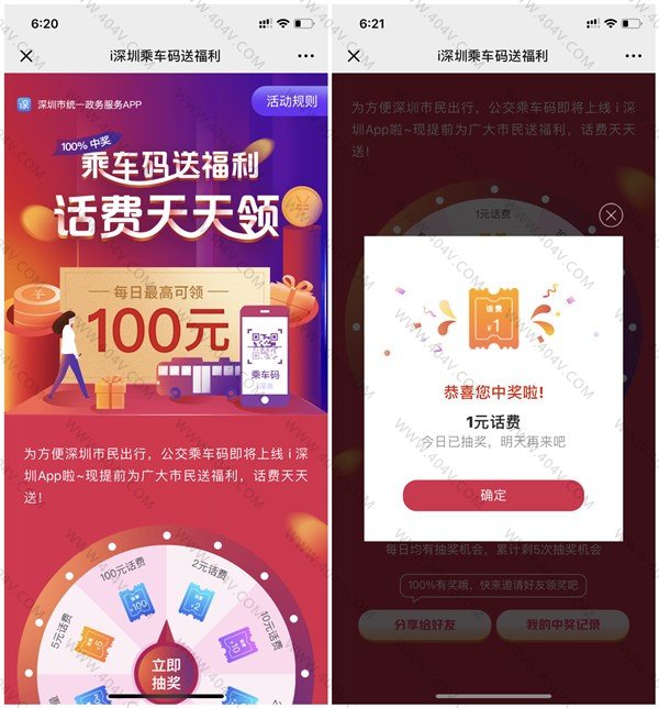 奖励是必中的,最低也能中1元话费或者100M流量!