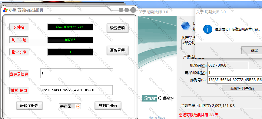 4,点击获取注册码,注册码会显示在注册码位置,点击复制注册码复制到软件注册码