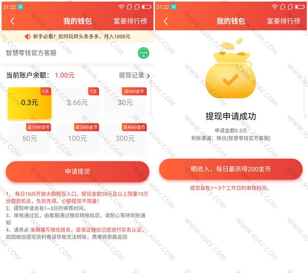再去我的零钱里面提现 只能提现0.3元 提现后1-3个工作日内审核后发放 微信黑号可参与
