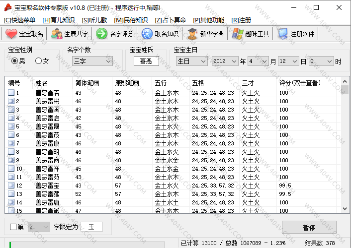 和你在外面花两三百找人测出来的名字一样。不过需要你自己耐心点找好听的名字。
