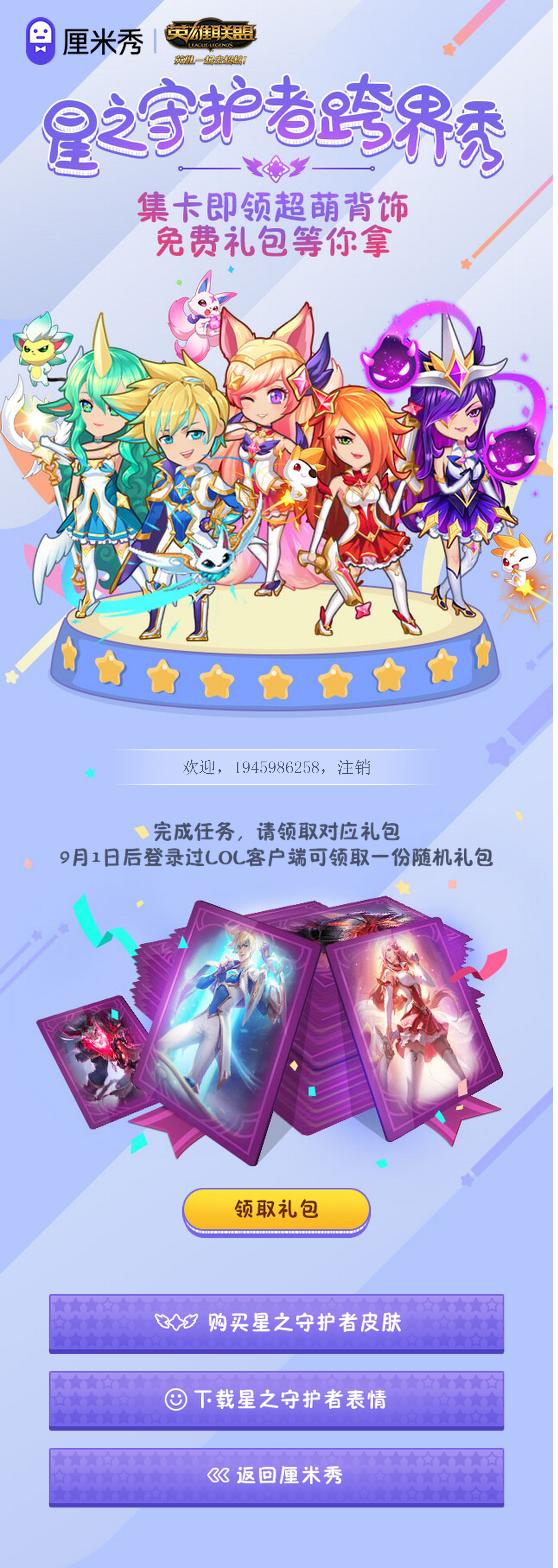 只要是9月1日后登录过LOL客户端的玩家 可以领取一份随机礼包
