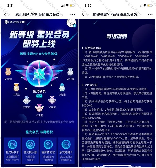 经过V8疑似事件以后 一直没看到腾讯视频V8上线 不过最近却看到了即将上线的新等级“星光会员”