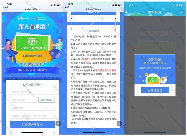 扫码进入活动界面 如果特别卡就过一会在进去 注册以后领取爱奇艺周卡